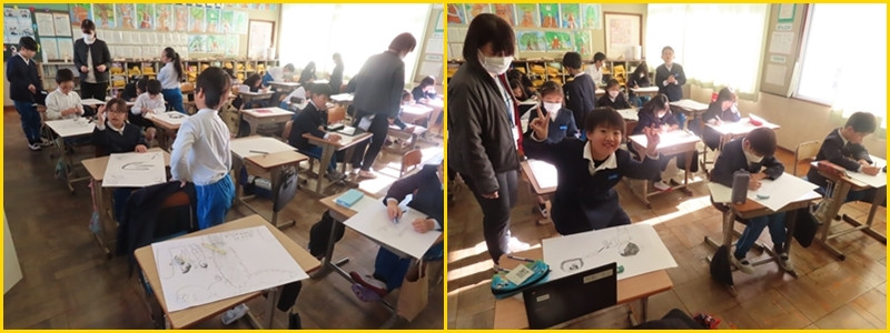 防火ポスターを描いていました。下がきをもとに、筆ペンでなぞっています。ほとんど下がきが完成です。着色している子もいました。火は生活に必要で大切ですが、使い方を間違えると大変なことになります。みんなのポスターで火災がなくなることを願っています。
