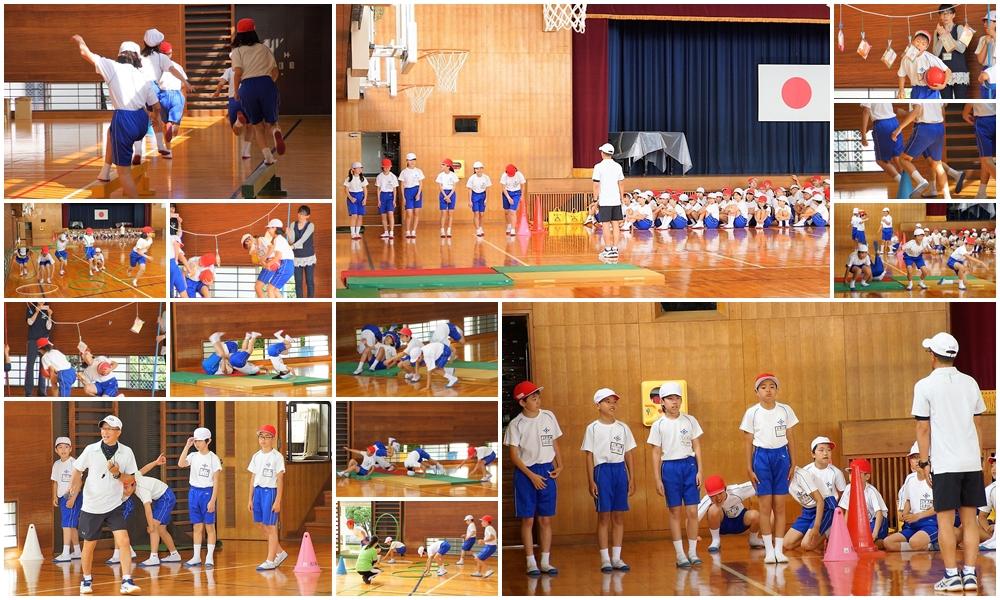 2018年5月14日 16時38分昨日は楽しみにしていた町民運動会が中止となり、テンション下げ下げでしたが、公民館のご協力もあって、夢にまで見た、6年生にとったら、5年間ずっと待ち続けた、待望のパン食い競争を再現しました。室内の体育館でしたが、永井先生のご協力と全面バックアップにより、本格的なコースで、みんなも真剣な態度で取り組みました。昔ながらの競技ですが、本気で腕使わずに口だけで取るのは、超難関ですよ(n*´ω`*n)