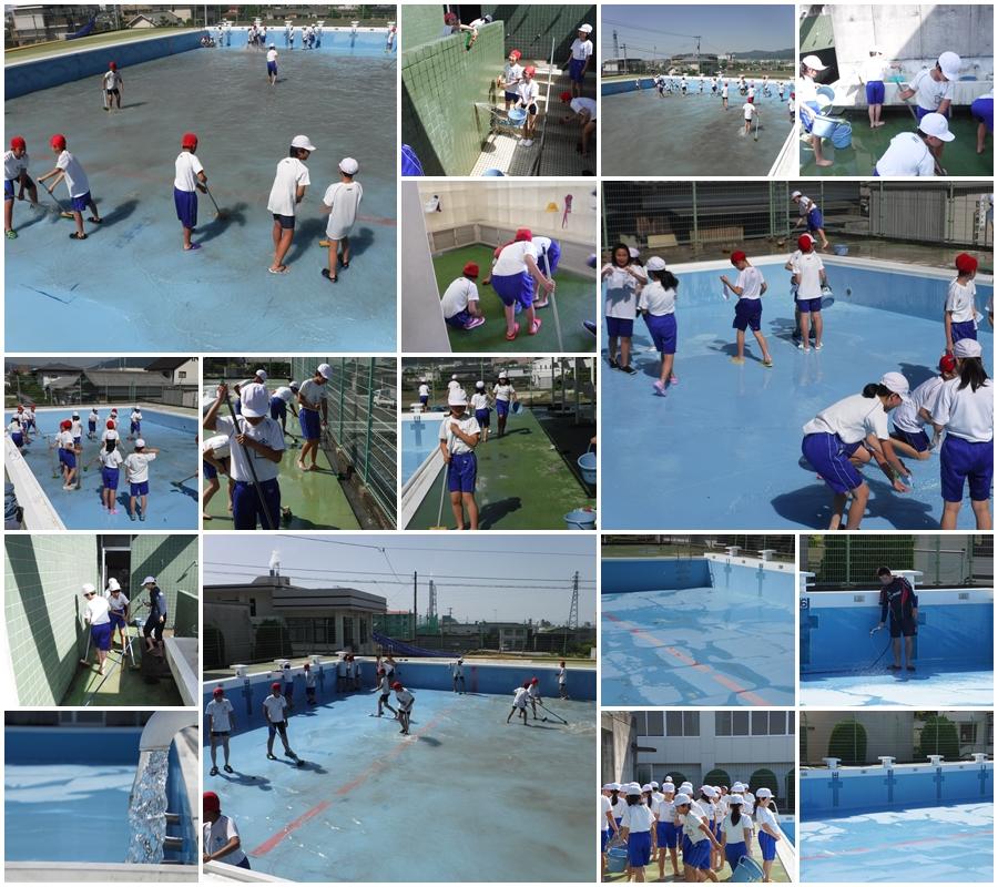 2018年5月24日 19時59分日差しがきつくなり始め、いよいよ夏を連想させるほどの天候になってきました。そうです、夏といえば、プールです。もちろん、放っておいても勝手に自動でプールがきれいになるはずもなく、きれいに掃除できなければ水泳の授業ができないということで、高学年が代表して、2つのプールをきれいに清掃してくれました。プールの床もみるみるきれいになり、びっくりしました。